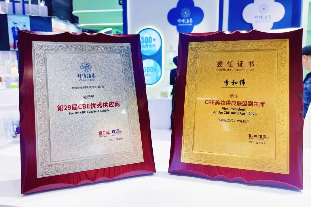 在2025第29届CBE中国美容博览会上,伟博海泰收获双重荣耀:伟博海泰集团董事长、首席科学家李和伟博士凭借在冻干护肤领域的卓越贡献,荣膺“CBE美妆供应联盟副主席”;伟博海泰凭借企业过硬的技术实力与优质服务,一举摘得“第29届CBE优秀供应商”。
