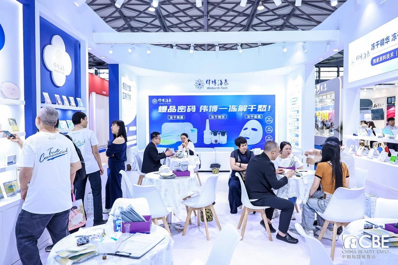 5月12—14日,2025CBE展会在上海新国际博览中心盛大举行。以 “全球新品发布” 为主题,展会汇聚美妆行业创新力量。伟博海泰携冻干精华、冻干眼膜、冻干面膜等多系列冻干科技新品、爆品亮相N1馆F01展位,凭借突破性的护肤功效与创新剂型,吸引了众多客户垂询,成为本届展会备受瞩目的焦点之一。