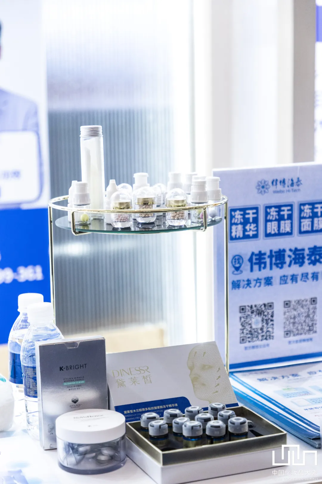 在 2025 中国化妆品大会同期展上,伟博海泰以冻干科技矩阵惊艳亮相 —— 冻干面膜、冻干精华、冻干眼膜等数十款爆品组成的“冻干家族”,凭借原料创新、制剂创新等技术优势成为全场焦点。